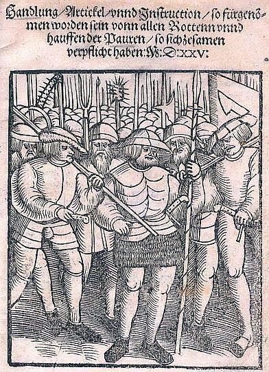 Mit seinen 95 Thesen von 1517 setzte Luther die Reformation in Deutschland in Gang - eine Bewegung, die auch im Herzogtum Württemberg rasch an Ein-fluss gewann. Viele Aufständischen griffen die Ideen der "Neuen Lehre" auf und begründeten damit 1525 ihre Forderungen im Bauernkrieg ("12 Artikel"). Anfangs zeigte Luther noch Verständnis für ihre Klagen. Doch nach der gewaltsamen Eroberung Weins-bergs ("Weinsberger Bluttat") am 16. April 1525 wandte er sich entschieden gegen sie. In seiner Flugschrift "Wider die mörderischen und räuberischen Rotten der Bauern" rief er zur Nieder-schlagung des Aufstands auf. Luther stellte zwar die katholische Kirche in-frage - die weltliche Ordnung jedoch nicht. Für ihn war die Obrigkeit von Gott legitimiert.