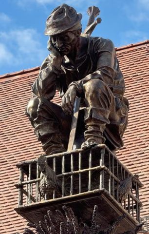Über das Leben des Malers Jörg (oder: Jerg) Ratgeb aus Schwäbisch Gmünd ist wenig bekannt. Zu seinen Haupt-werken zählen der Barbara-Altar und der Herrenberger Altar. Später wurde Ratgeb Mitglied des Stuttgarter Rates und verhandelte zunächst mit den Aufständischen. Doch im Verlauf des Bauernkriegs wechselte er die Seite: Er wurde Kriegsrat und Bauernkanzler der aufständischen Gemeinschaft. Nach der Niederschlagung des Auf-stands floh Ratgeb, wurde jedoch in Pforzheim gefasst und vor Gericht gestellt. Seine Strafe war hart: Er wurde öffentlich gevierteilt - das Ende für einen einst angesehenen Bürger.