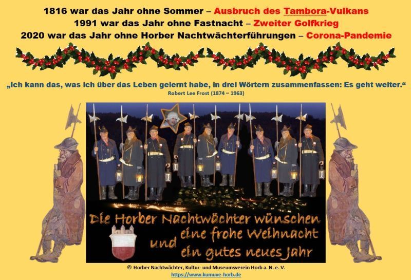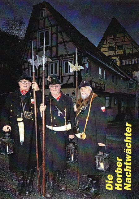 1874 Die vier Horber Nachtwächter erhielten eine neue "Dienst=Instruction", nach der sie "die Stunden an den seither üblichen Plätzen und in seitheriger Reihenfolge pünktlich, laut und deutlich ausrufen" sollten.