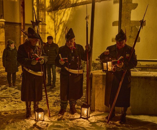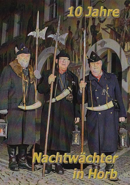 2006 Heinrich Raible, Bruno Springmann und Joachim Lipp belebten mit einem ersten Umgang die jahrhundertealte Horber Nachtwächtertradition.