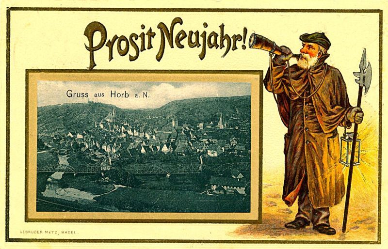 1902 Die Verpflichtung, die Stunden laut und deutlich auszurufen, wurde für die Horber Nachtwächter aufgehoben.