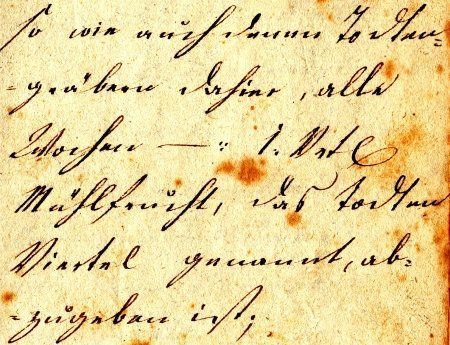 1818 Beim Verkauf der beiden städtischen Getreidemühlen mussten die Erwerber die Verpflichtung übernehmen, weiterhin das "todten Viertel" abzugeben. Als Totengräber stand jedem der vier Nachtwächter wöchentlich "1 Viertel Mühlfrucht Horber Maas" aus den städtischen Getreidemühlen am Neckarkanal zu. Damit war für jede Nachtwächterfamilie mit ca. 2,5 kg Mehl zumindest das tägliche Brot gewährleistet.
