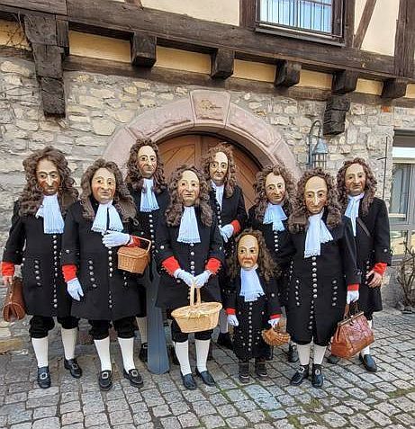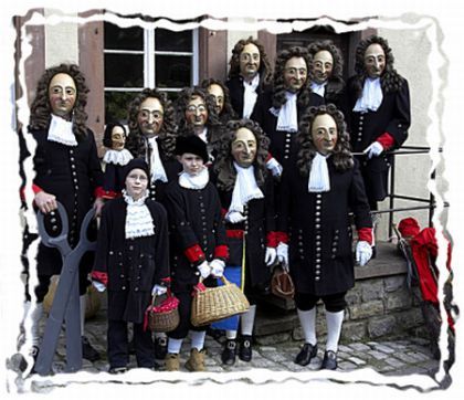 Die Kleidung des Tuchmachers entspricht dem zeit-genössischen Porträt des Horber Handelsherren und Bürgermeisters Johannes Geßler aus dem Jahr 1680. Johannes Geßler (1630 - 1705) war ein Großonkel des Fürstabts Martin II. Gerbert von St. Blasien. Sämtliche Masken wurden vom Vereins- und Ausschussmitglied Bruno Springmann geschnitzt und das Fassen der Masken wurde vom Ehrenvorsitzenden Franz Geßler übernommen.