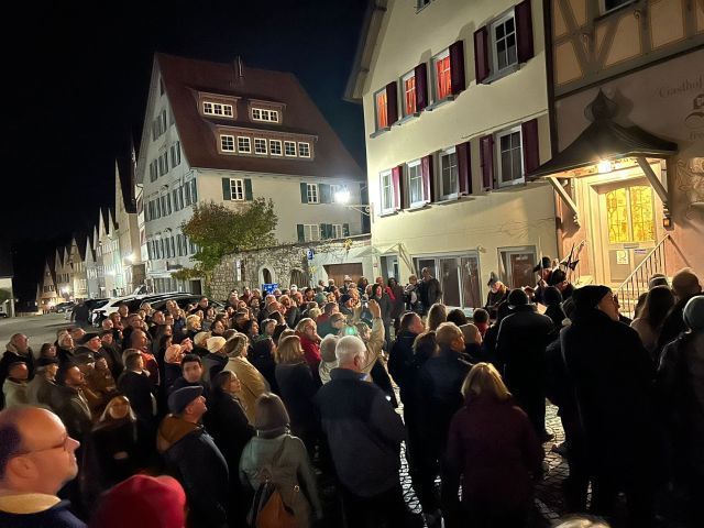 Horber Nachtwächter zu Besuch beim KI-Avatar Sebastian Lotzer in der Großen Landesausstellung UFFRUHR! 500 Jahre Bauernkrieg in Bad Schussenried
