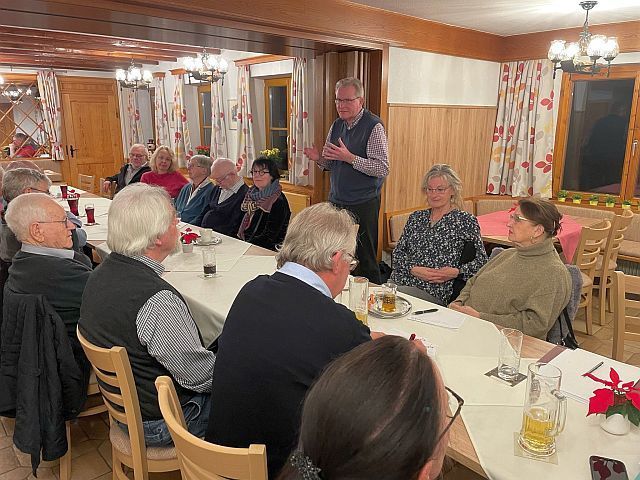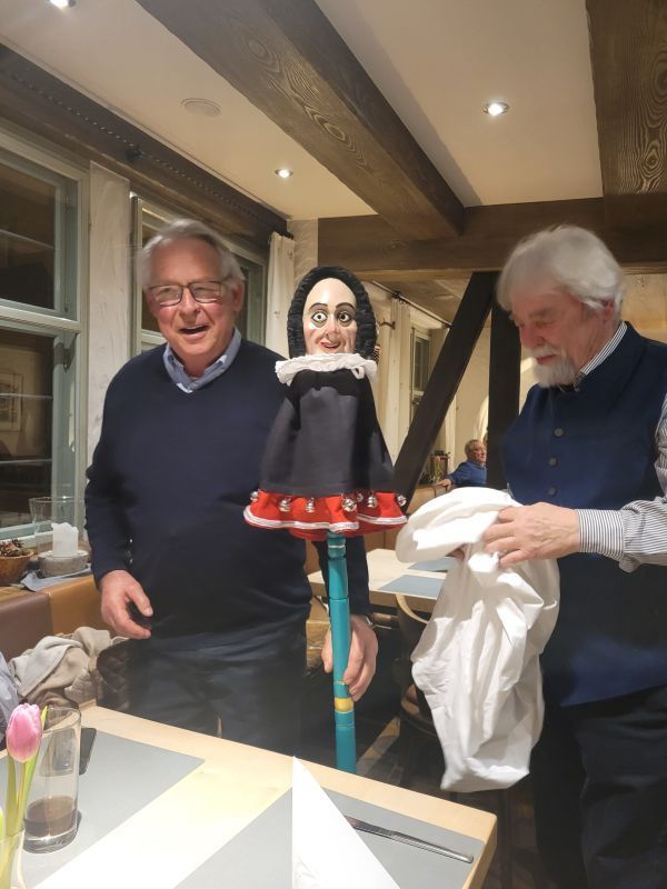 Beim traditionellen Severusmahl der Tuchmacher vom Kultur- und Museumsverein im Gasthaus Germania präsentierte Heinrich Raible seine neue Marotte. Bei den Schnitz-, Näh- und Drechselarbeiten fand Raible Unterstützung durch Bruno Springmann, Ute Lipp und Peter Thumm.